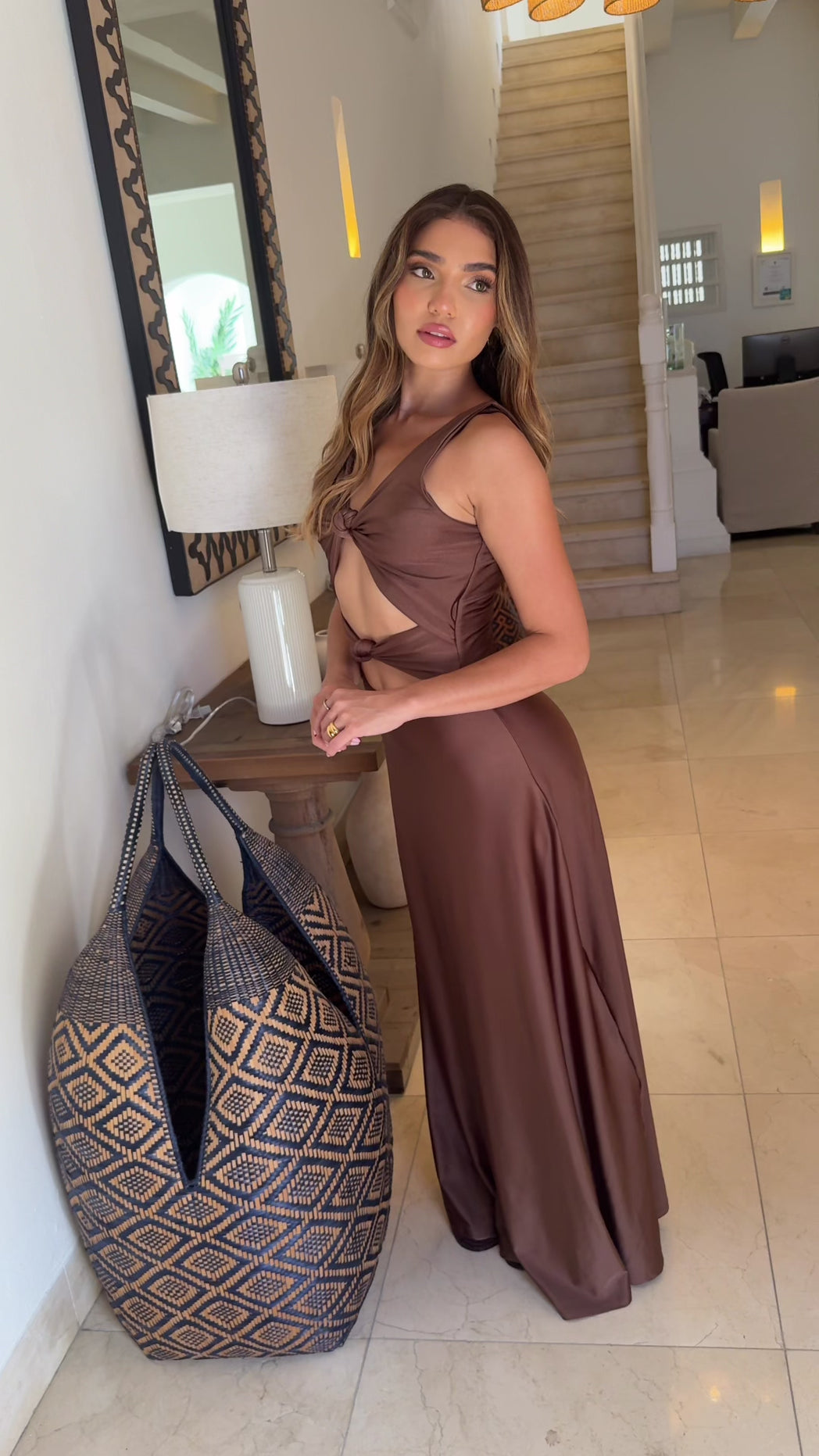 Discover our “Aurora” dress — a long, fitted gown in a brown color with subtle shimmering details, and the best part: it’s reversible! It features semi-thin shoulder straps and a double twisted knot that adds a unique touch. The fabric is lightweight and breathable, giving you comfort and style for any occasion. It’s definitely a must-have in your wardrobe! ☆ The model is wearing size S.☆ Also available in black, red, and beige.☆ Made by Colombian women.